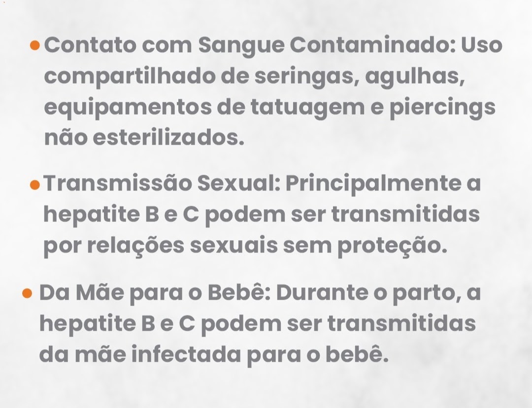 A hepatite é uma inflamação do fígado, geralmente causada por vírus, e pode ser transmitida de várias maneiras.